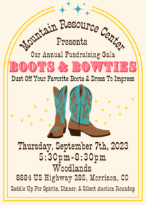 Strap on your spurs and get ready to hoot and holler at the most thrilling shindig of the year! Mountain Resource Center invites you to dust off your favorite cowboy boots, wrangle up your finest denim, and put on a show-stopping display at the Boots & Bowties Gala. The big event is on September 7th, starting at 5:30 pm, and will be held at Woodlands, a modern barn nestled in the woods of Morrison, Colorado.